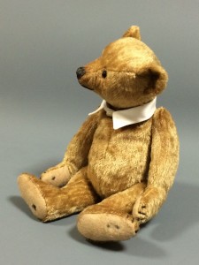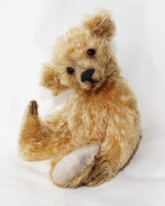 Single classic bear, dressed or undressed with accessories such as a further bear, doll, doll’s pram, another animal, bike, car, chair etc.