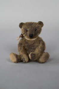 Miniature teddy bear up to 10 centimeters, undressed or dressed with handmade clothes, with a maximum of three additional items such as another bear, animal, doll, doll’s pram, bike, car, chair etc.